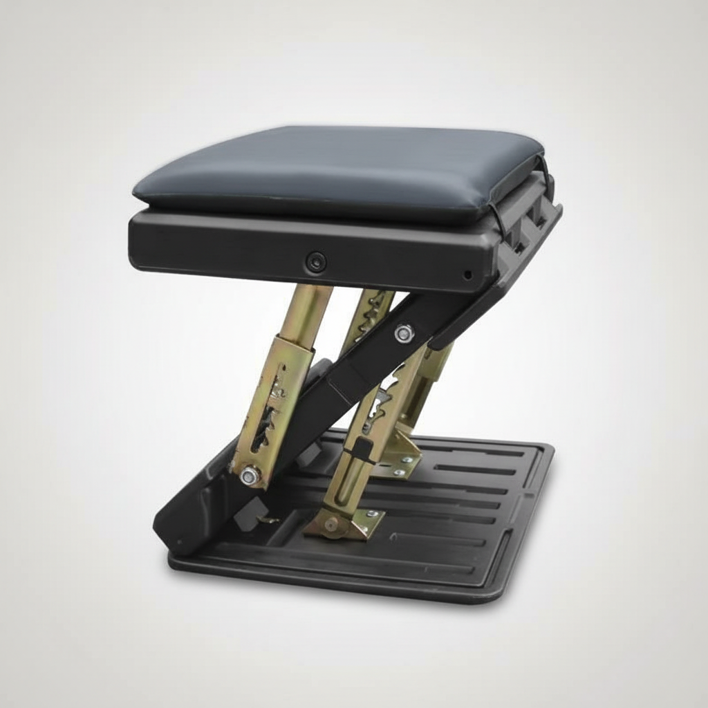 - Matière : Plateau supérieur rembourré en similicuir et mousse, base en plastique robuste, mécanisme d'ajustement en Aluminium et acier.