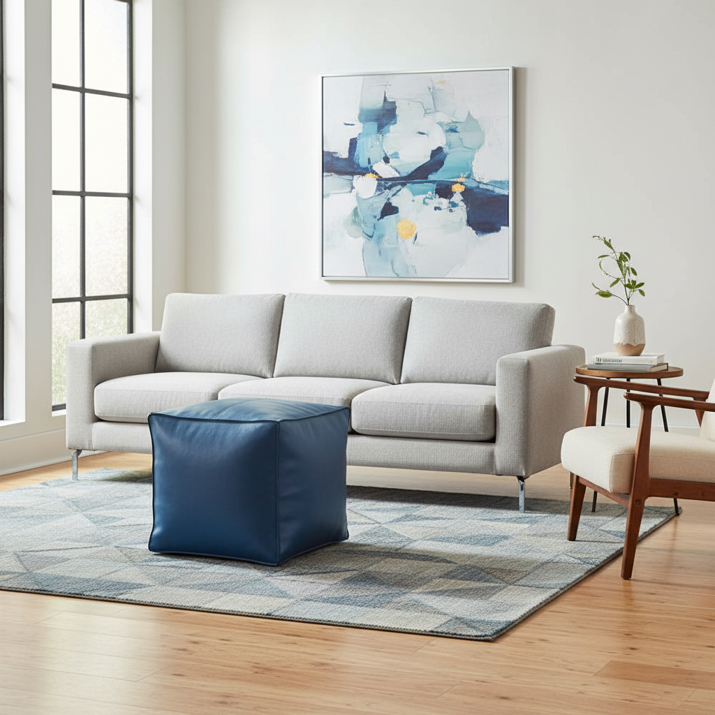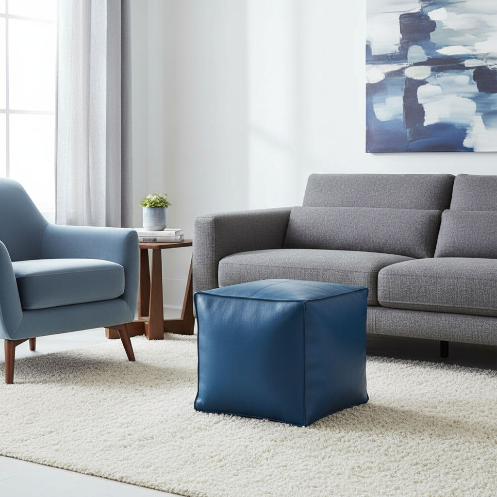 Repose Pied Bleu Canard : Pouf Carré en Cuir PU Résistant à l'Eau