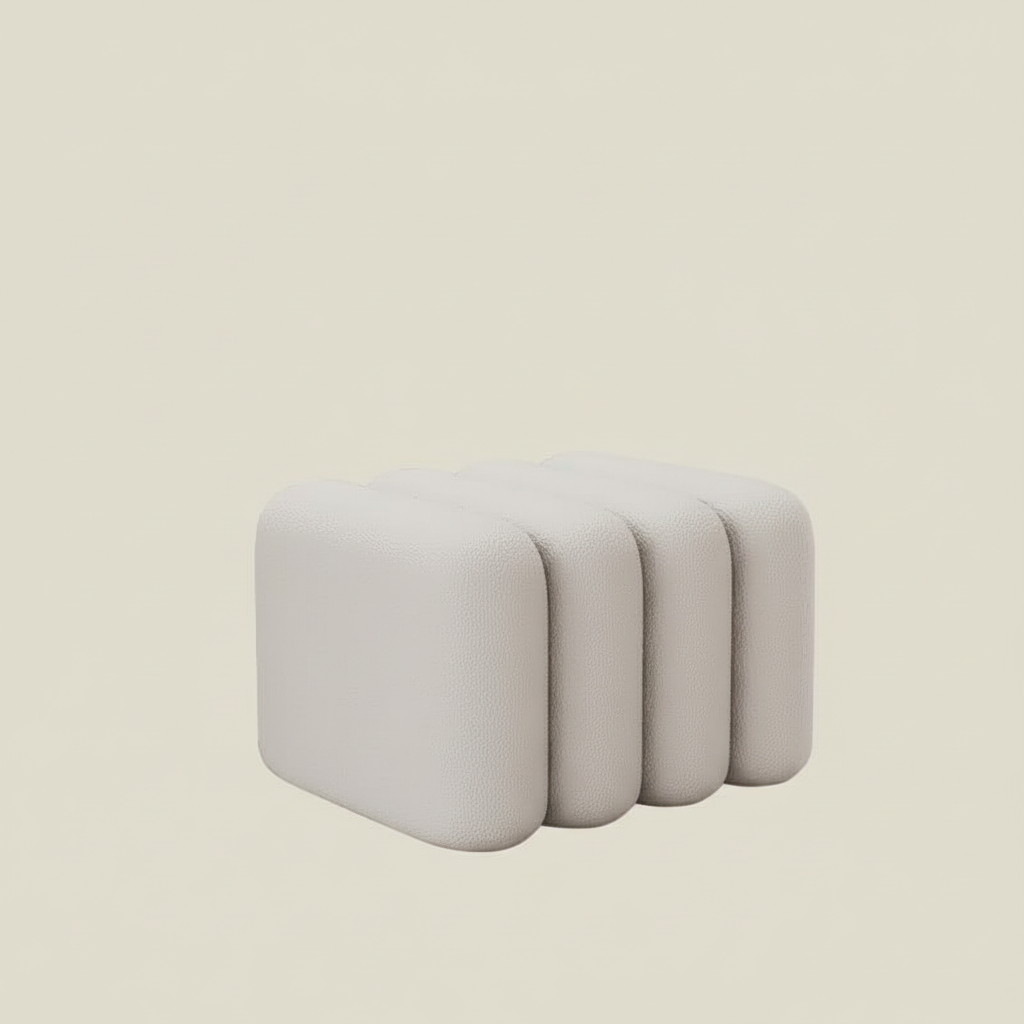 Ce Repose Pied Cuir Blanc présente un design contemporain composé de quatre sections rembourrées distinctes et aux bords arrondis. Il est conçu pour offrir un soutien confortable aux pieds et s'intégrer discrètement dans divers intérieurs.