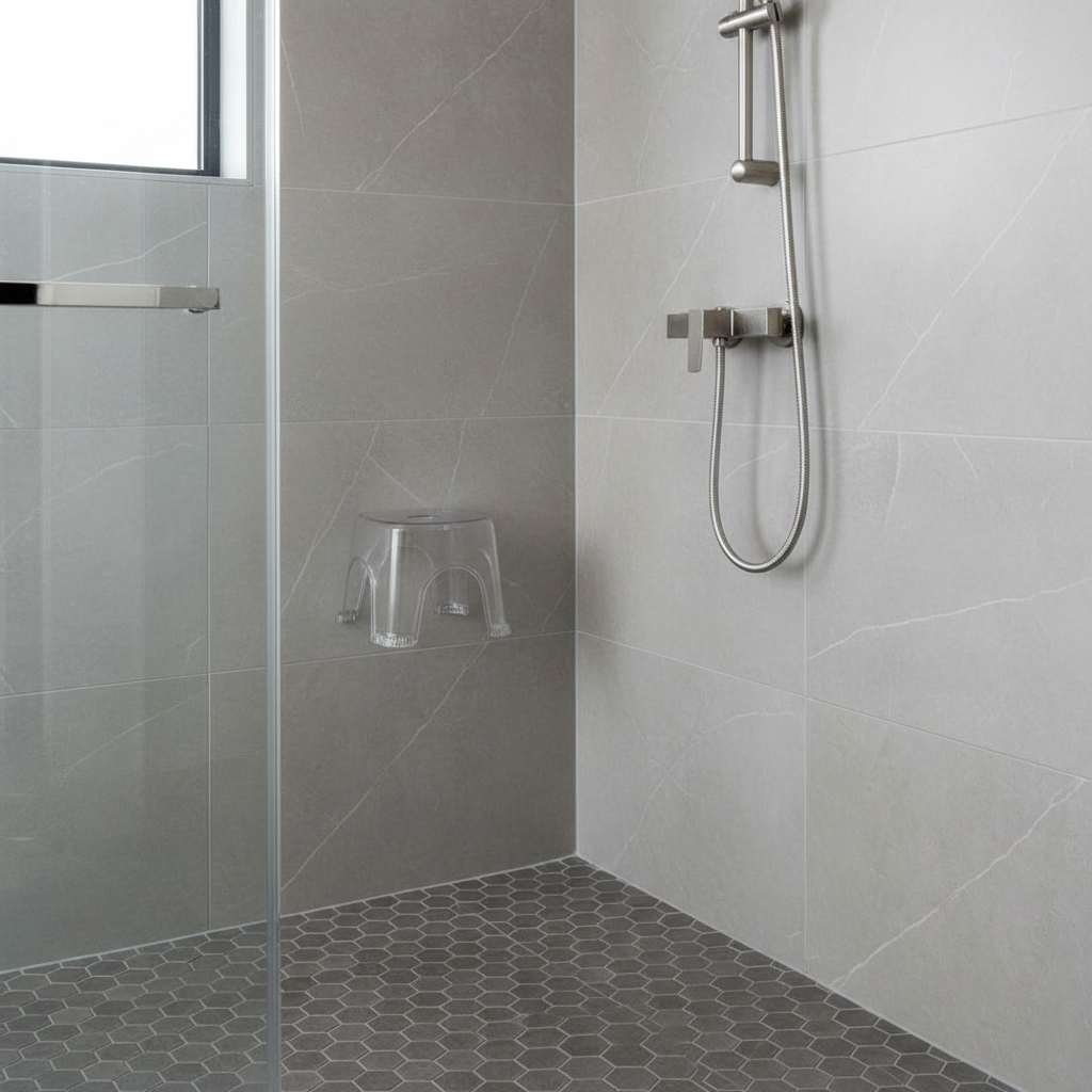 Optimisez votre routine de douche avec notre repose-pieds pratique et discret.