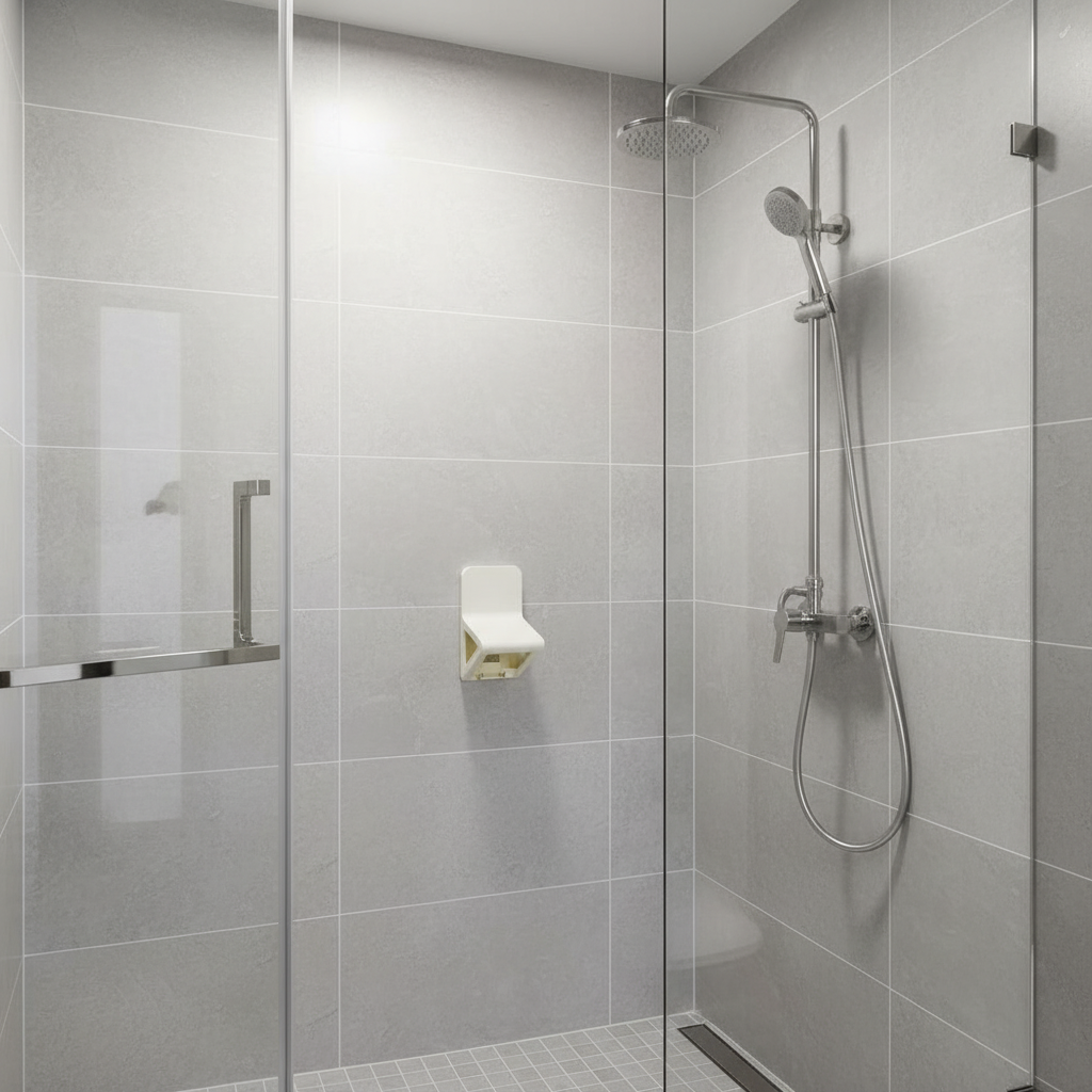 Simplifiez votre routine de douche et gagnez en confort avec notre repose-pieds mural.