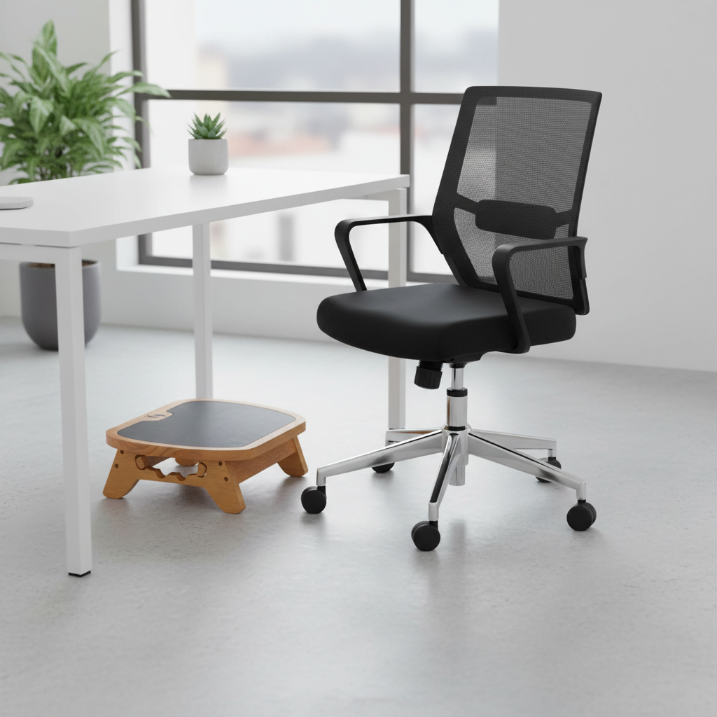 Améliorez votre confort au bureau avec notre repose-pieds ergonomique en bois.