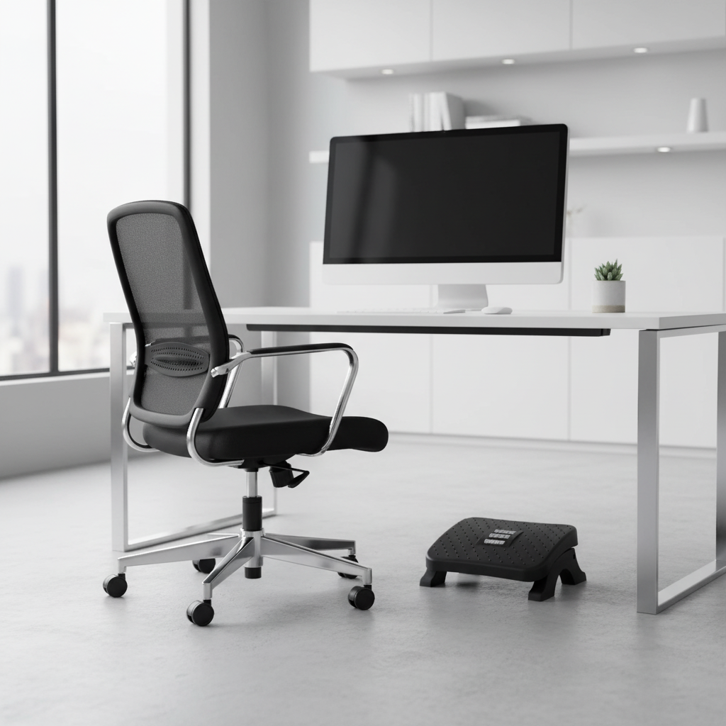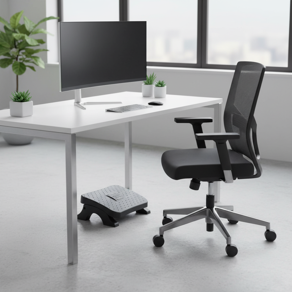 - Utilisation prévue : Soutien ergonomique sous un bureau, idéal pour les environnements de travail ou les espaces domestiques (salon, bureau).