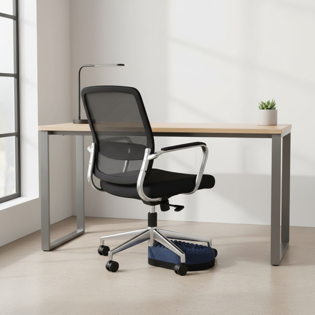 - Compatibilité / Conditions d’usage : Adapté pour être placé sous un bureau ou une table. Sa base antidérapante assure une stabilité sur sols durs ou moquettes. La surface massante est utilisable pieds nus ou avec des chaussettes.