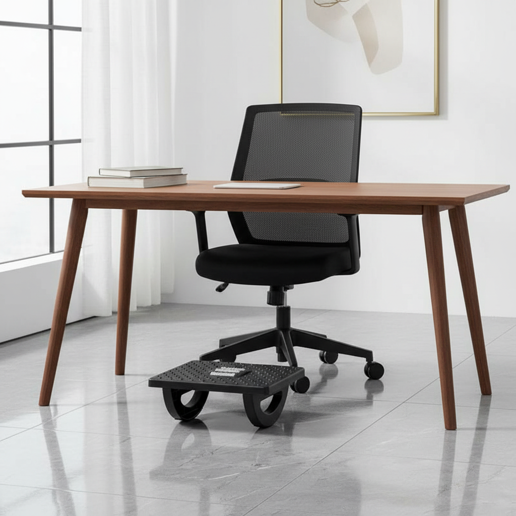- Compatibilité / Conditions d’usage : Adapté à la plupart des bureaux et chaises de bureau. Dispose d'une surface texturée antidérapante avec picots de massage et d'un mécanisme de bascule pour un mouvement dynamique des chevilles.