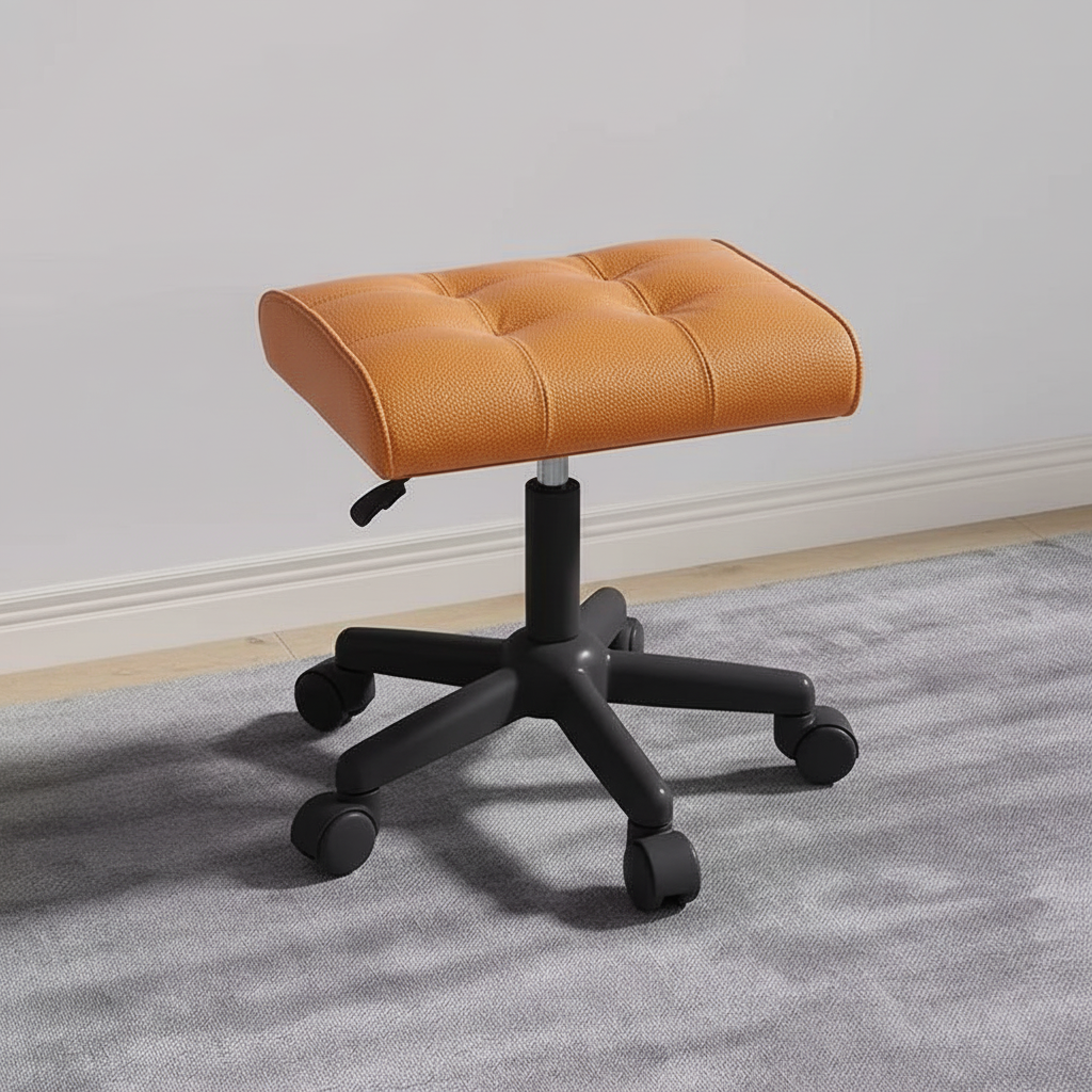 Ce repose pied ergonomique est conçu pour offrir un soutien confortable aux pieds et aux jambes durant les longues périodes assises. Il est équipé d'un coussin orange matelassé et d'une base à roulettes avec hauteur réglable pour une adaptabilité optimale.