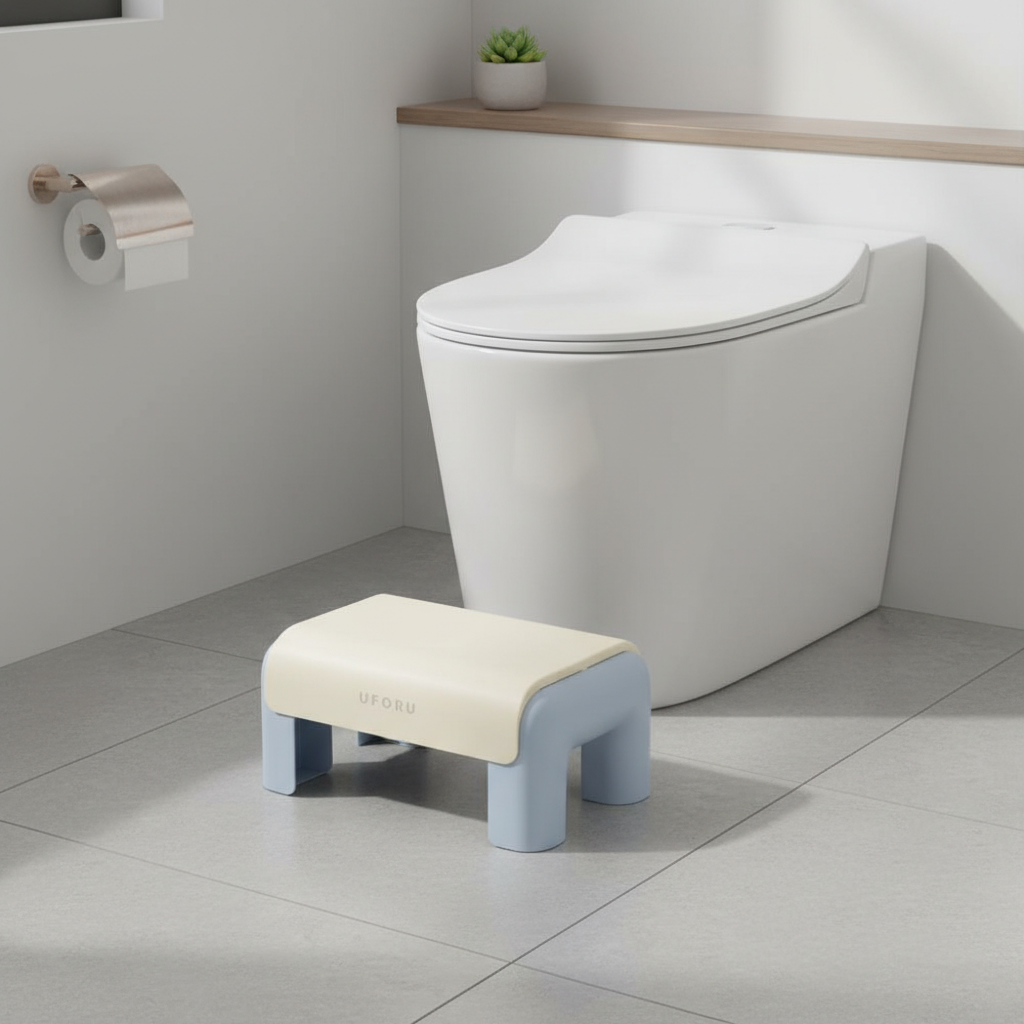 Enfin, pour un repose-pied toilette, placez-le au sol devant vos pieds afin d’adopter une position accroupie plus naturelle, bénéfique pour la digestion et le confort intestinal.