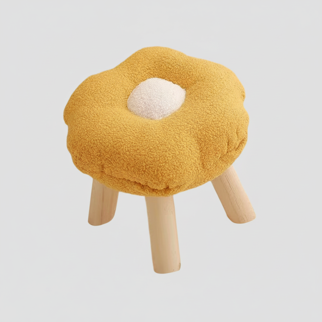 Ce Repose Pied Moutarde est un petit tabouret d'appoint caractérisé par son coussin en forme de fleur et sa teinte moutarde. Il est conçu pour offrir un soutien confortable et s'intégrer discrètement dans divers espaces.
