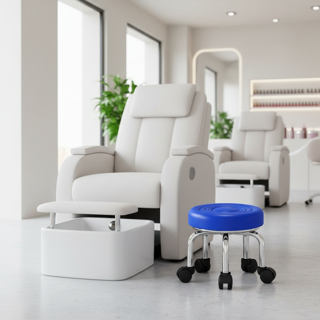 Repose Pied Pédicure bleu à roulettes spa – Mobile et Confortable