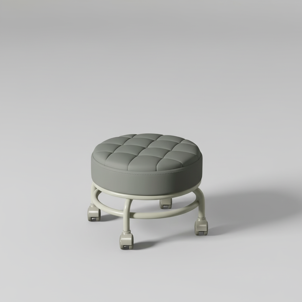 Ce repose pied pédicure rond est doté d'un rembourrage épais gris matelassé, conçu pour offrir un soutien stable et confortable. Équipé de roulettes universelles, il permet un déplacement fluide et silencieux, idéal pour les soins professionnels ou domestiques.