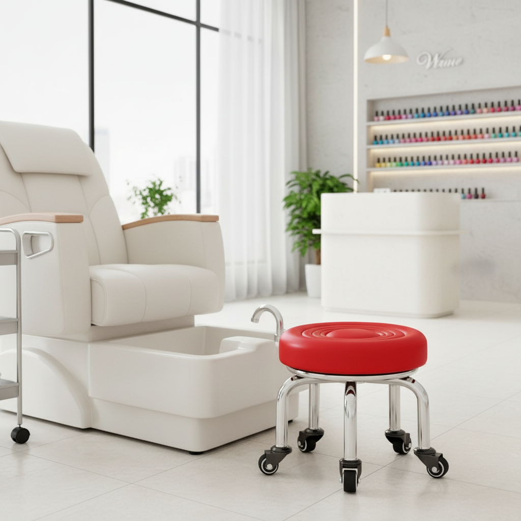 Repose Pied Pédicure rouge à roulettes Spa : Mobile et Stable