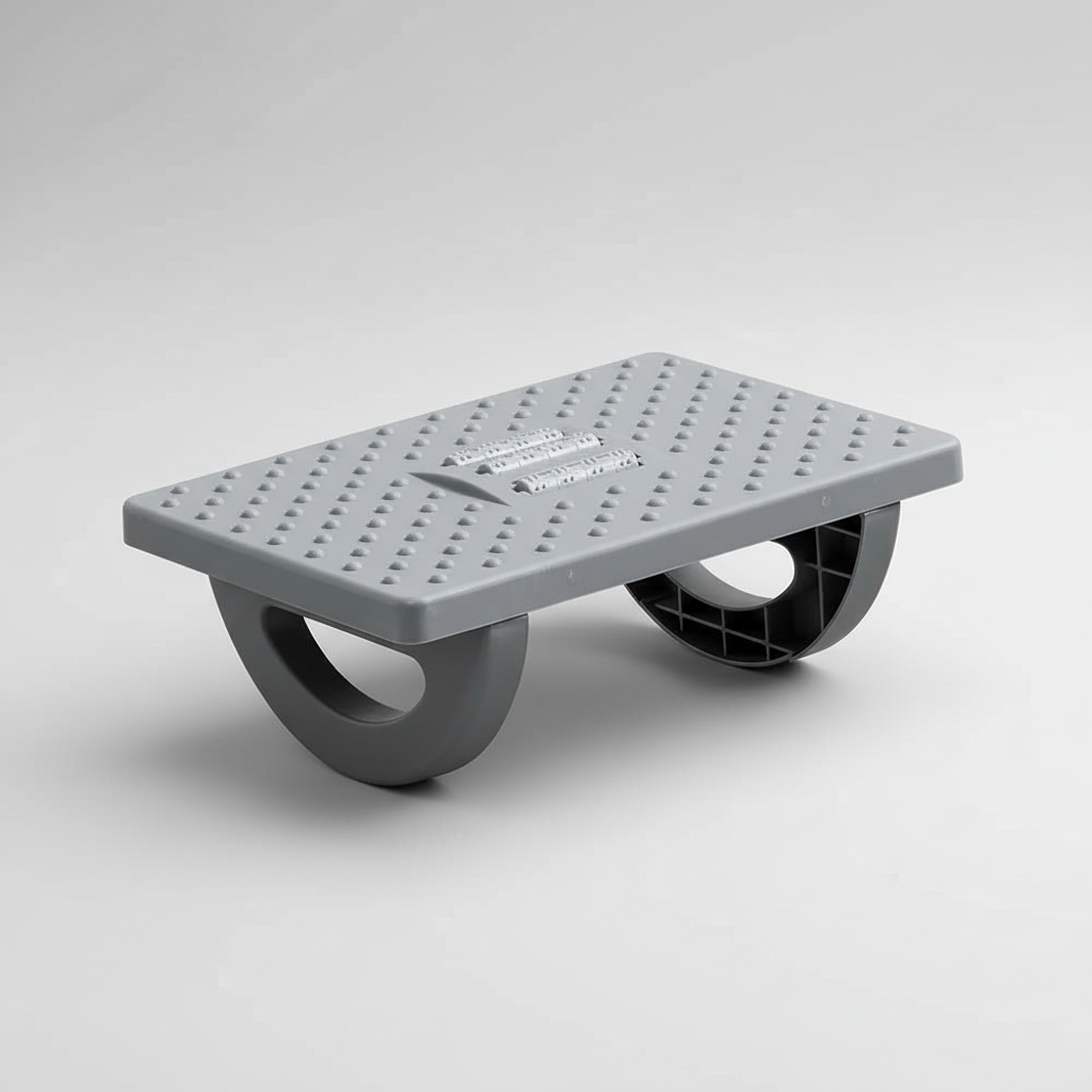 Ce Repose Pied Plastique est conçu pour offrir un soutien ergonomique et une stimulation plantaire sous un bureau, améliorant ainsi le confort lors de périodes prolongées en position assise.