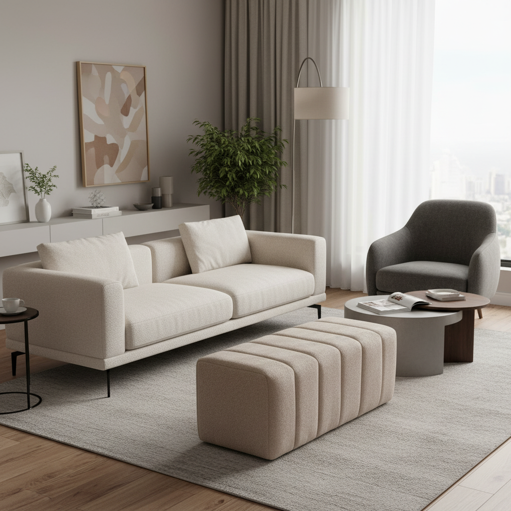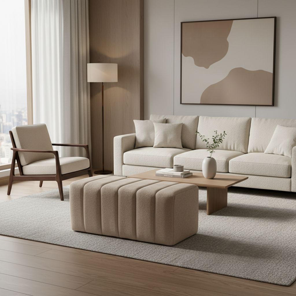 Repose Pied Salon Banquette beige cannelée – Confort et intégration
