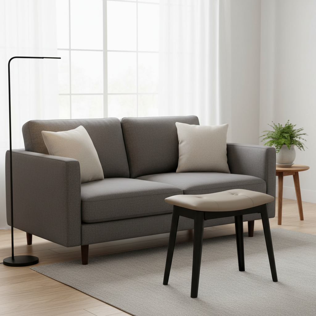 - Matière : Assise en similicuir (PU) rembourrée, structure et pieds en bois massif.