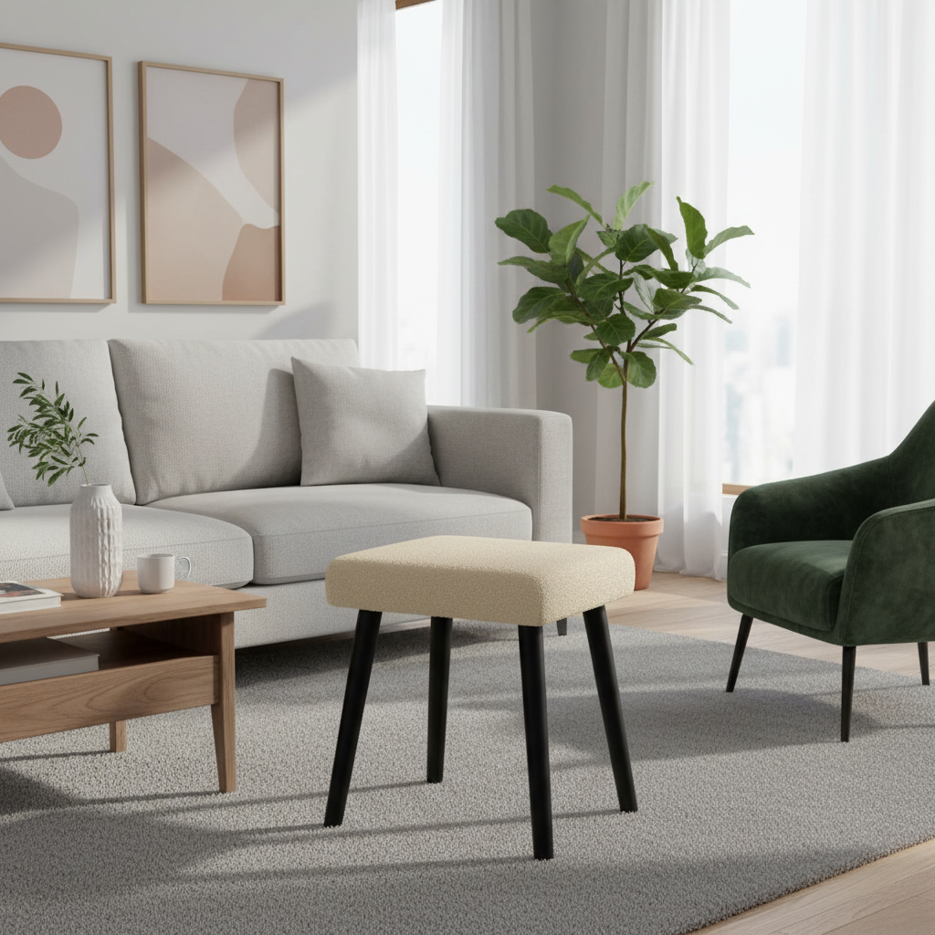 Repose Pied Salon beige bouclette pouf : Confort Rembourré et Stabilité