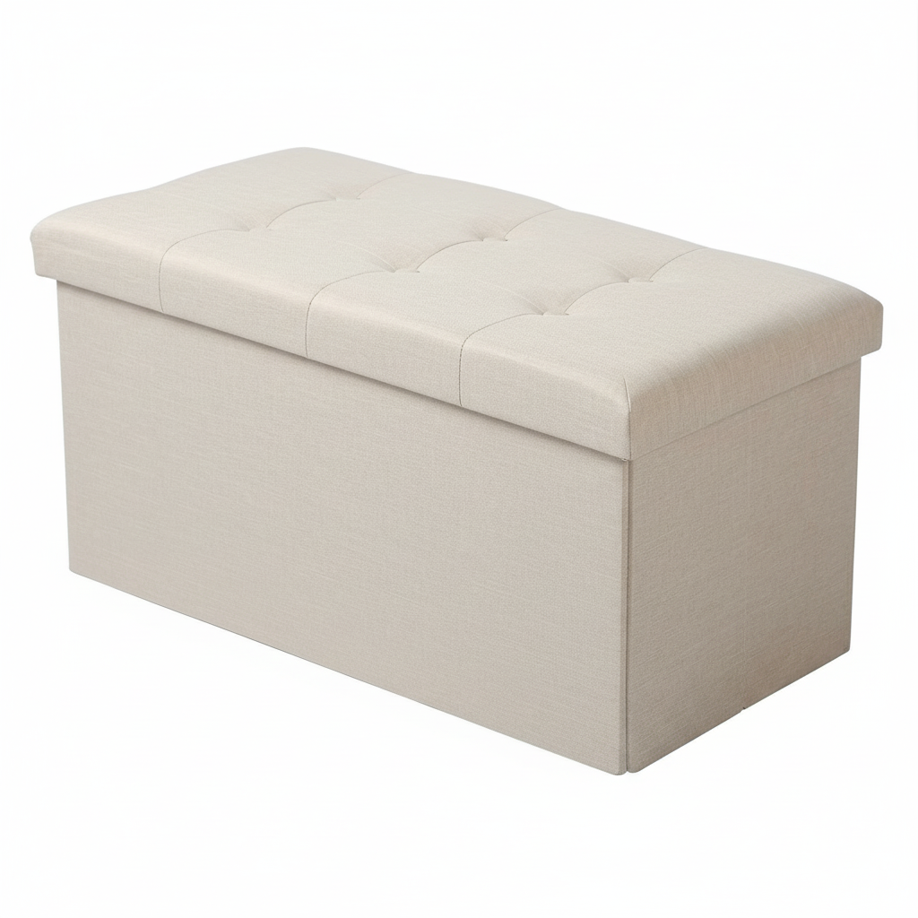 Ce Repose Pied Salon beige capitonné rangement est un banc pliant multifonctionnel offrant un espace de stockage interne. Il est conçu pour s'intégrer dans divers environnements domestiques tout en apportant une assise supplémentaire.