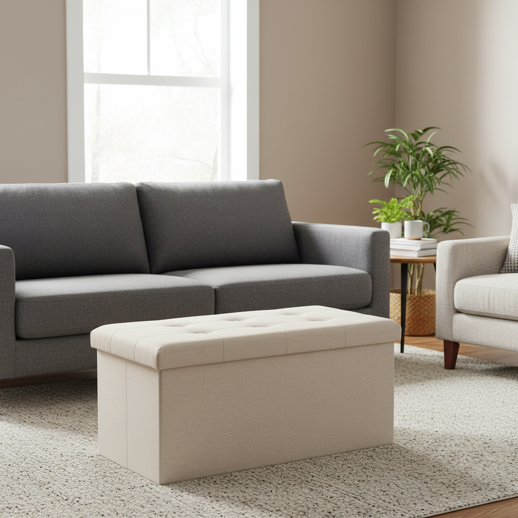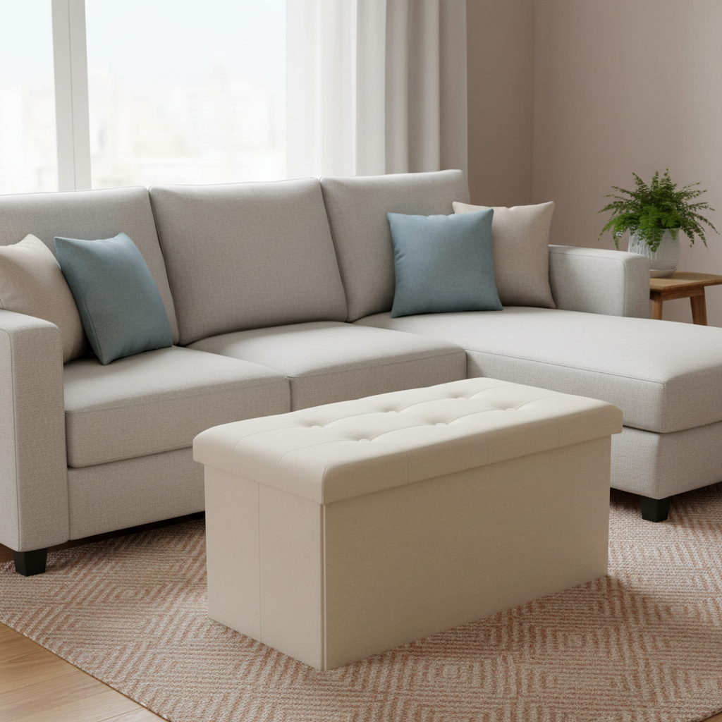 Pourquoi choisir notre Repose Pied Salon beige capitonné rangement