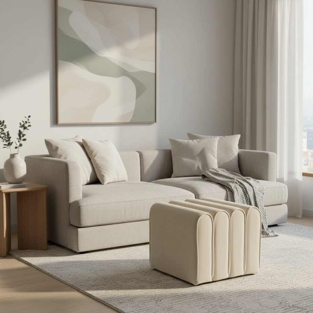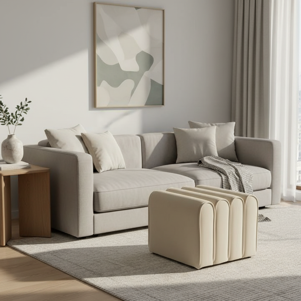 Repose Pied Salon beige côtelé canapé : Fonctionnalité et Aménagement