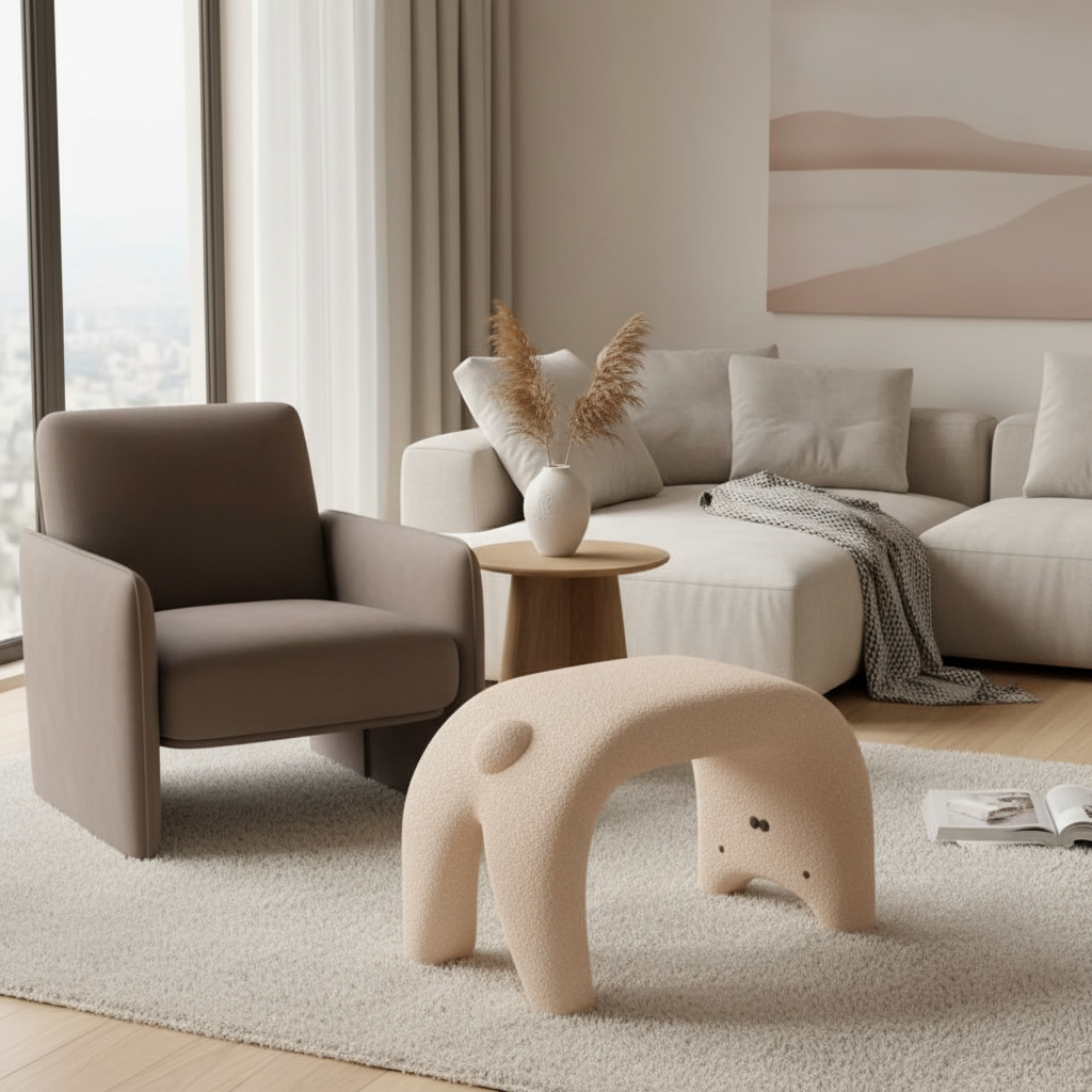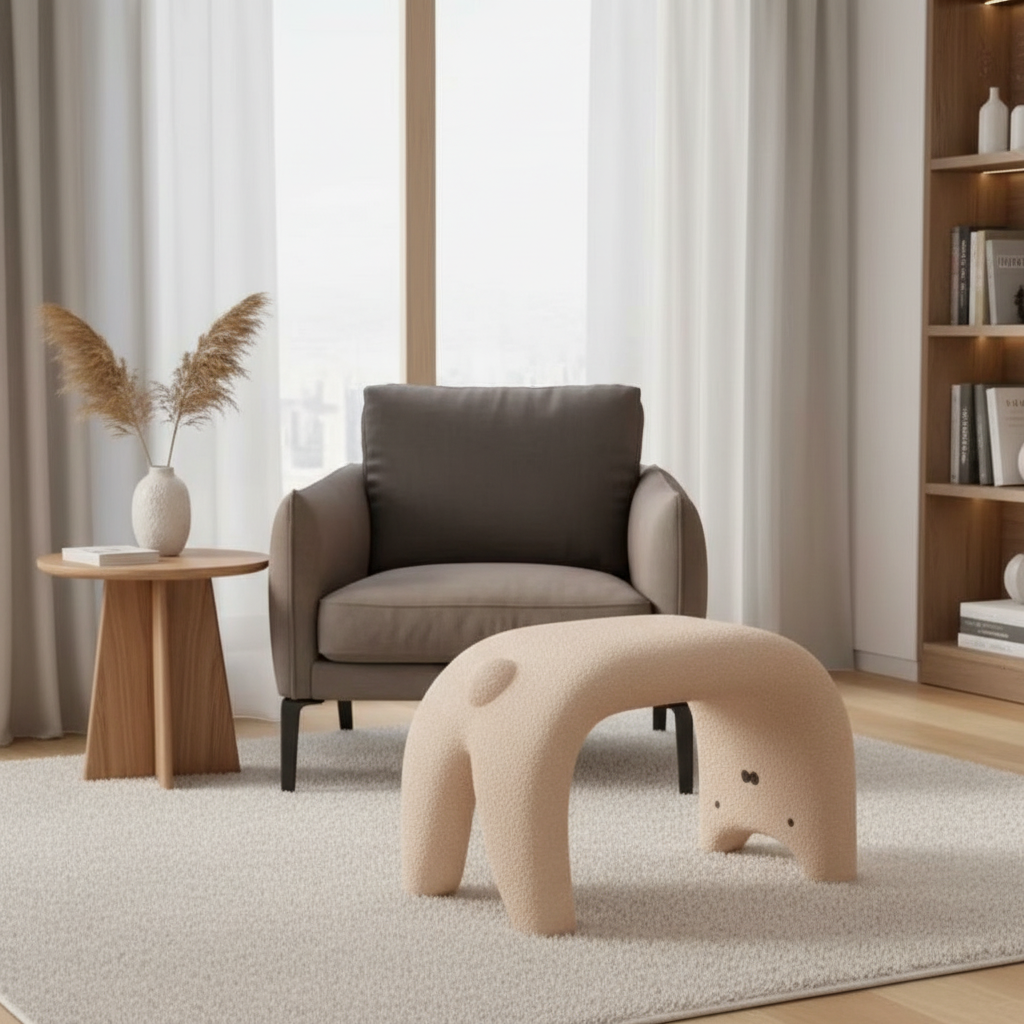 Pourquoi choisir notre Repose Pied Salon beige forme animale canapé