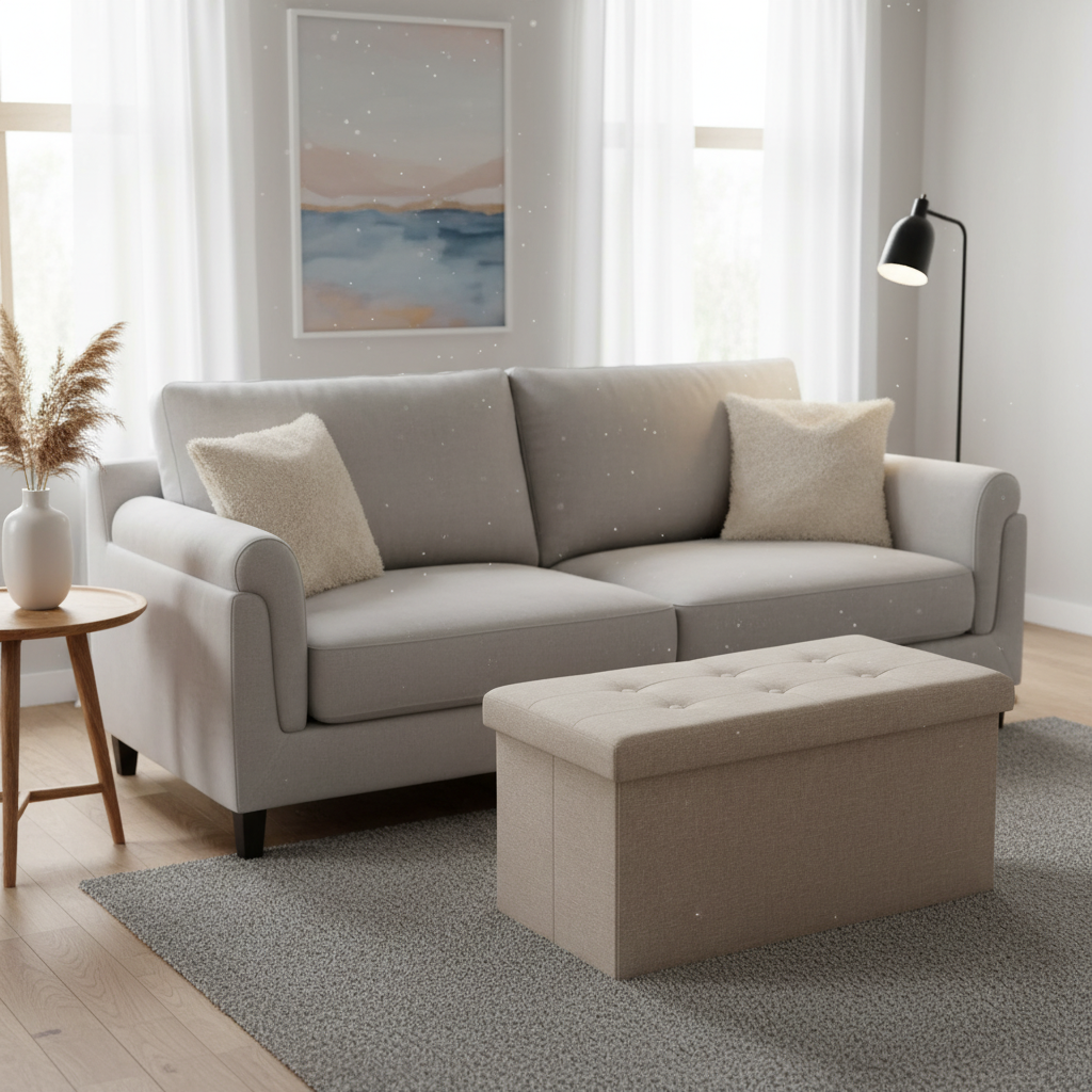 Comment entretenir votre Repose Pied Salon beige lin rangement