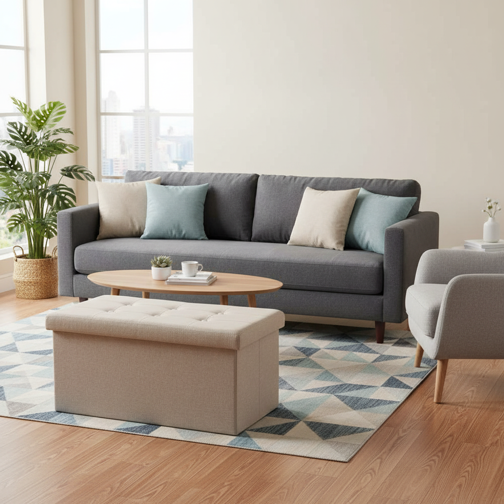 Repose Pied Salon beige lin rangement : Optimisation de l'espace et du confort