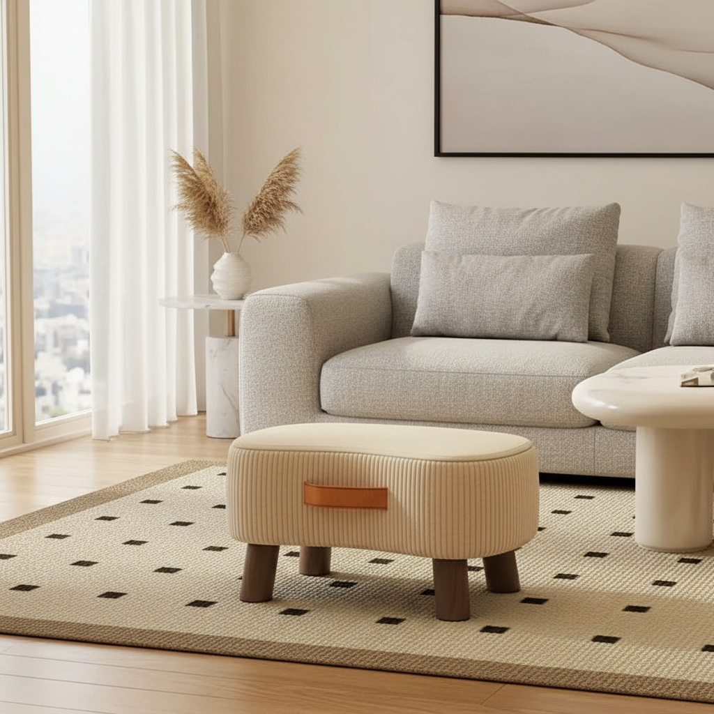 Repose Pied Salon beige velours canapé : Usage au Quotidien