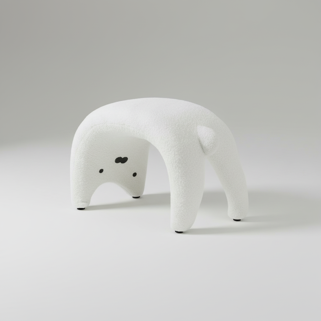 Ce Repose Pied Salon blanc bouclé canapé est un meuble d'appoint au design animalier distinctif, offrant une surface de soutien stable et confortable.