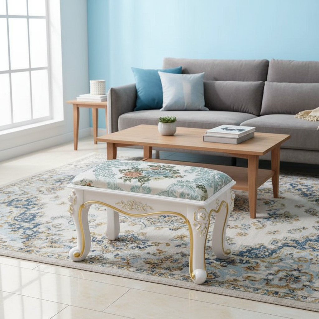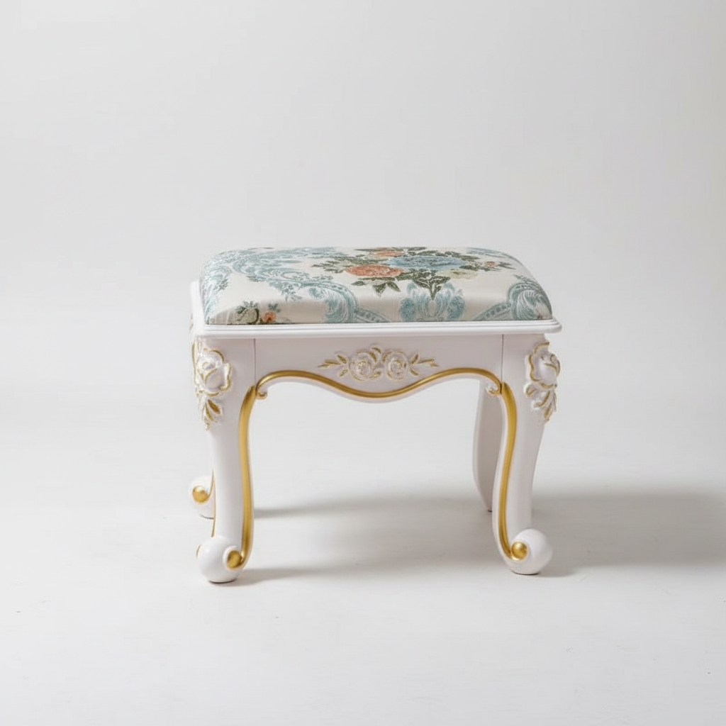 Pourquoi choisir notre Repose Pied Salon Blanc Doré Floral Dressing