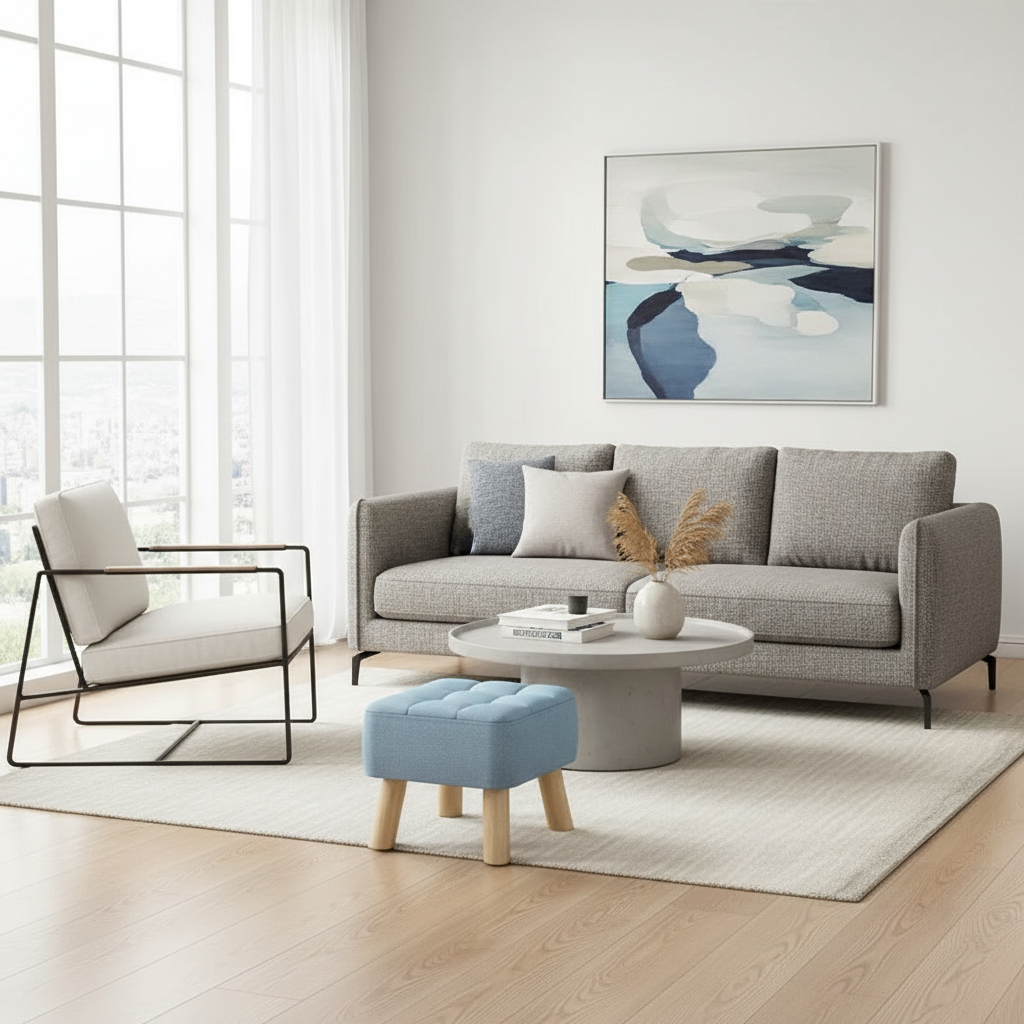 Repose Pied Salon Bleu Bois Canapé – Usage Quotidien