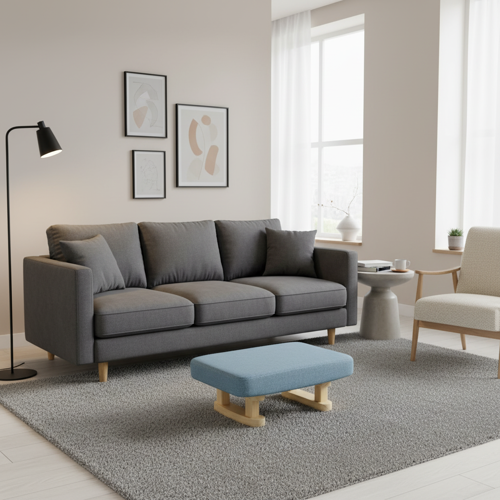 Repose Pied Salon bleu bois canapé : Usage Quotidien