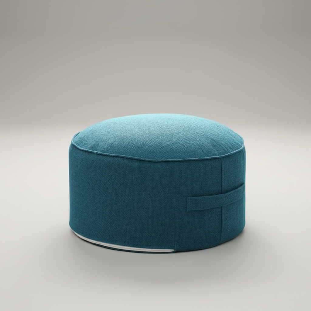 Ce repose-pied offre un soutien ergonomique pour les jambes et les pieds, améliorant le confort en position assise prolongée ou lors de sessions de méditation. Sa couleur bleue et sa forme ronde en font un élément de décoration discret et fonctionnel pour un salon.
