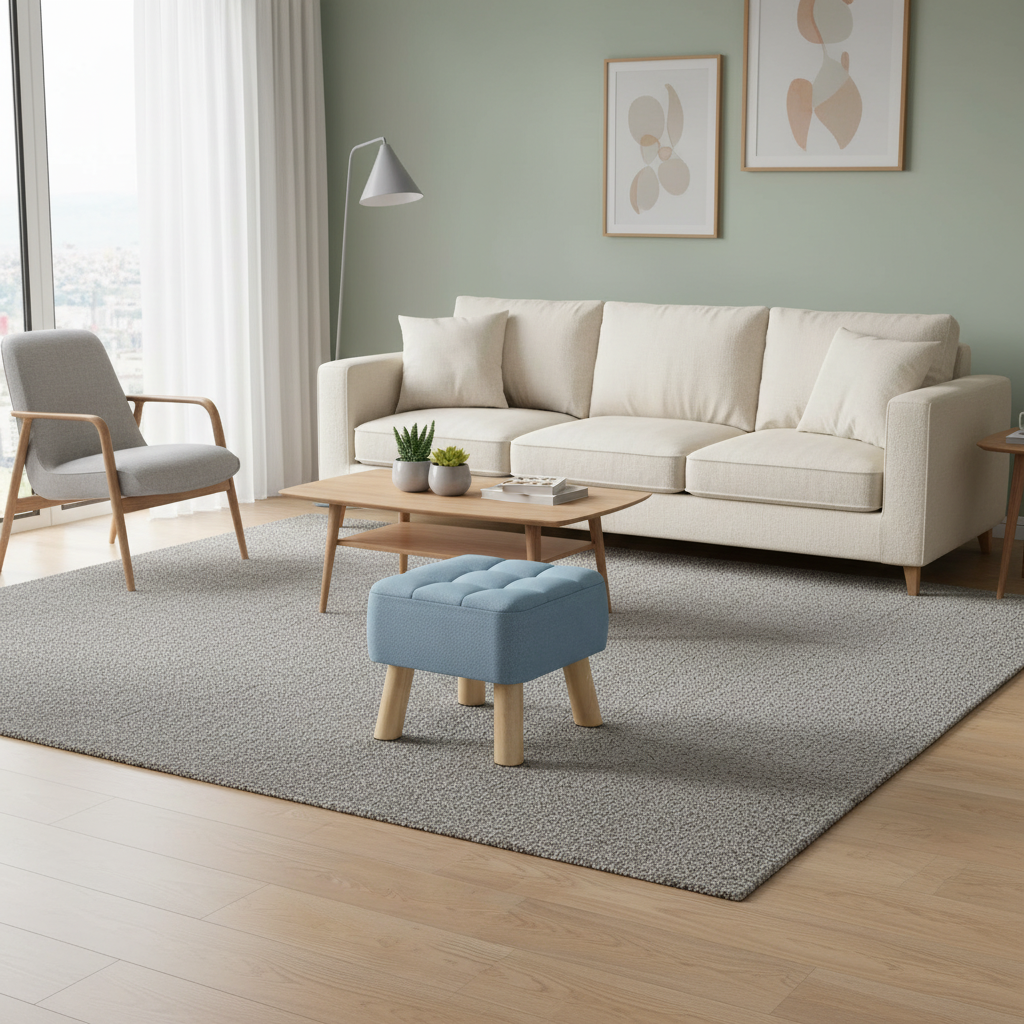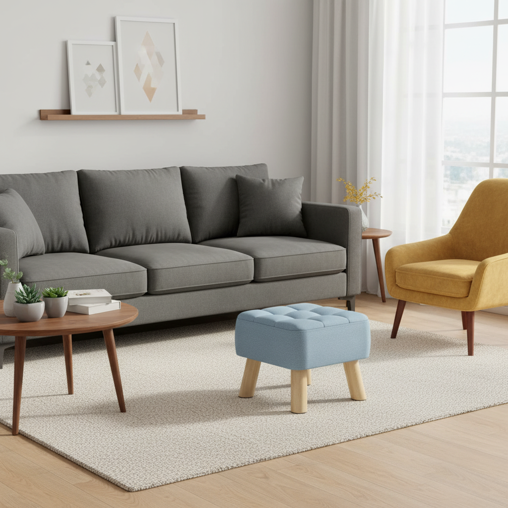 Repose Pied Salon Bleu Tissu Enfant | Design Carré Rembourré
