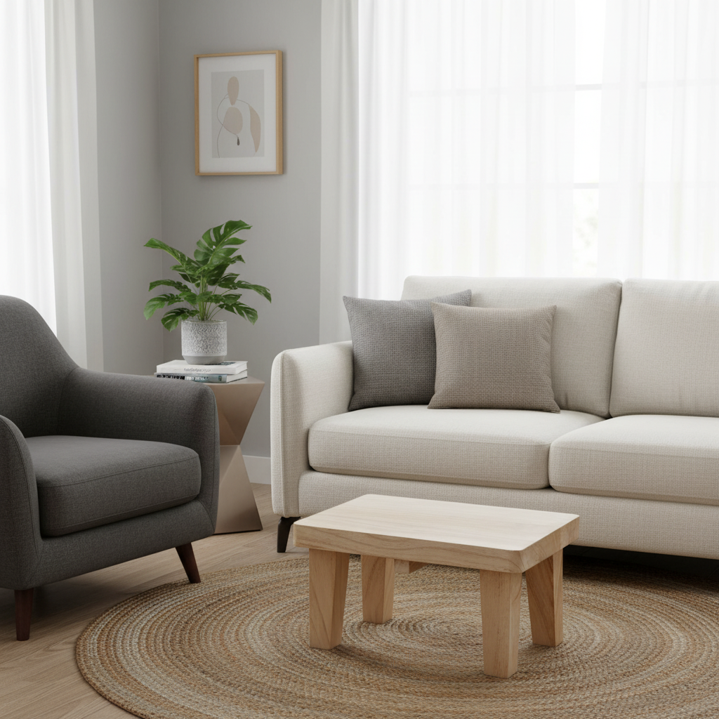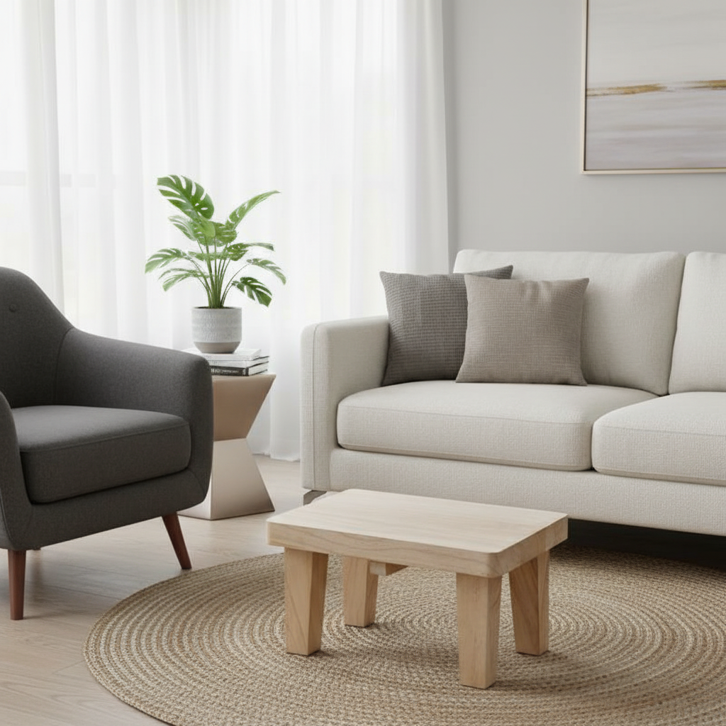 Repose Pied Salon Bois clair canapé – Design Minimaliste et Robuste