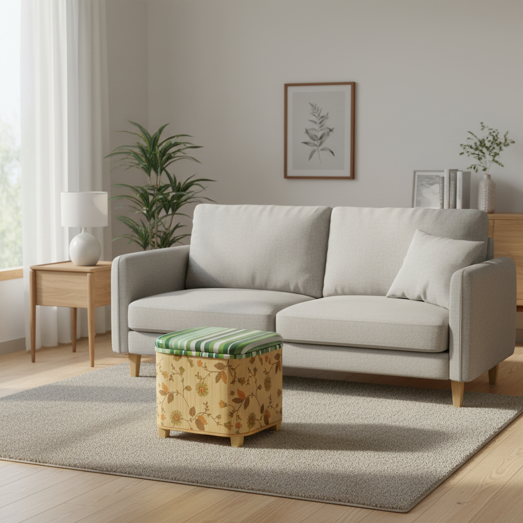 Repose Pied Salon bois floral avec rangement : Confort et Esthétique