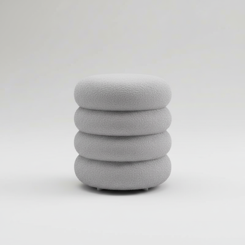 Repose Pied Salon Bouclé Gris Pouf : Design Doux et Compact