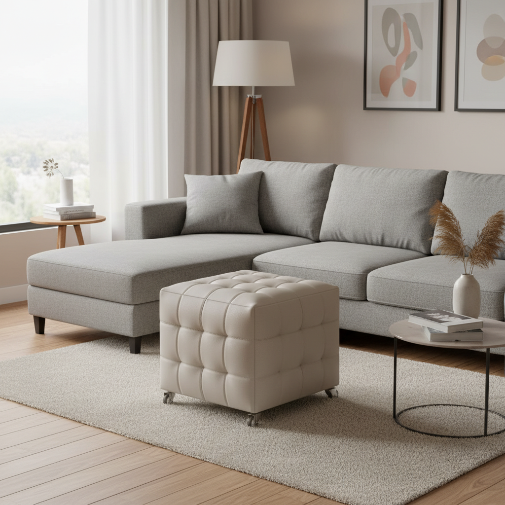 Repose Pied Salon capitonné moderne beige avec roulettes