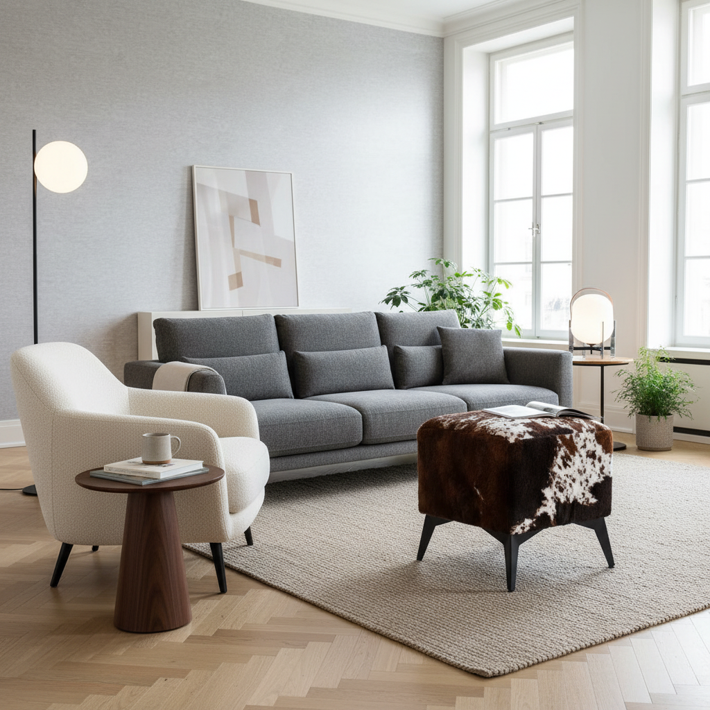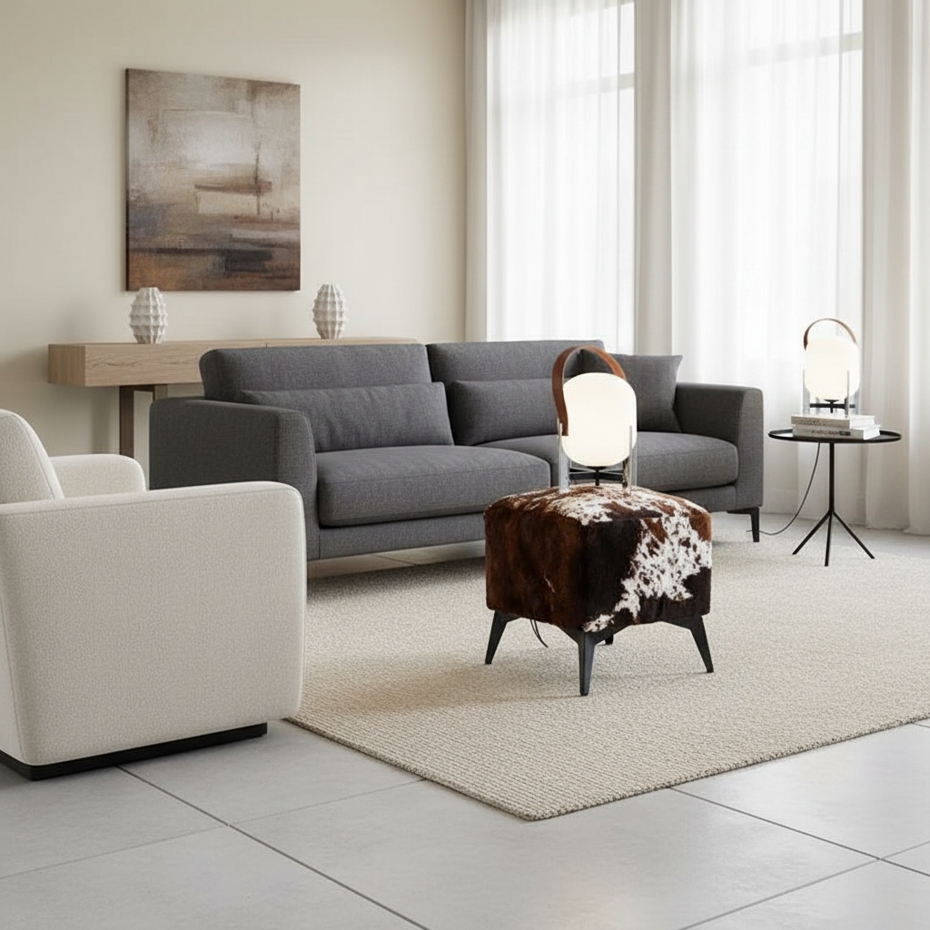 Repose Pied Salon carré motif vache tabouret : Design et Stabilité