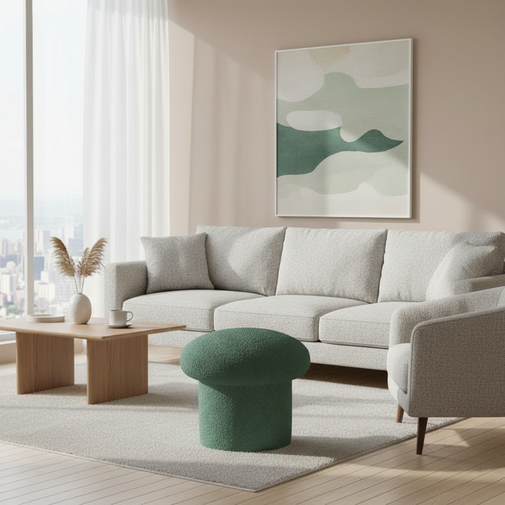 ↪︎ À propos de notre Repose Pied Salon Champignon Vert Pouf