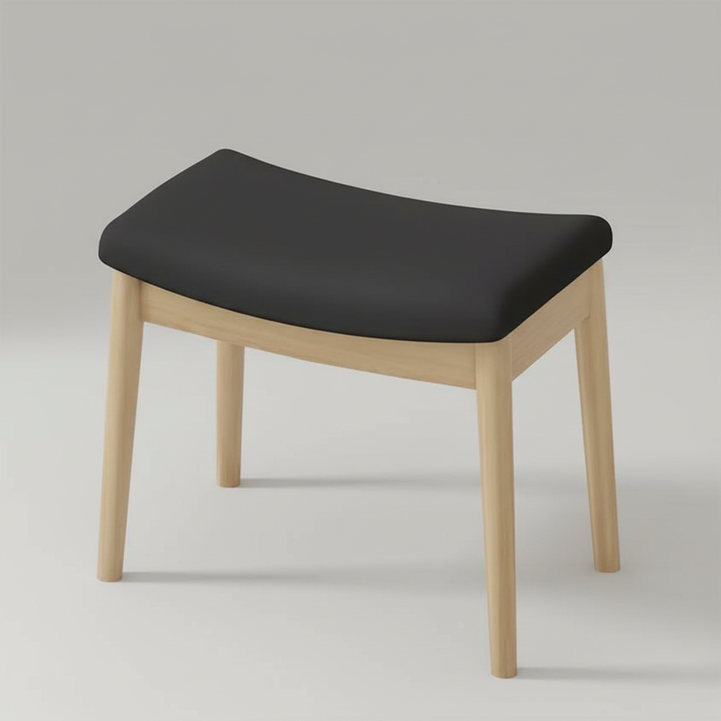 Ce repose pied présente une structure en bois massif avec une assise rembourrée au design concave. Il est conçu pour offrir un soutien stable et confortable dans divers environnements intérieurs.