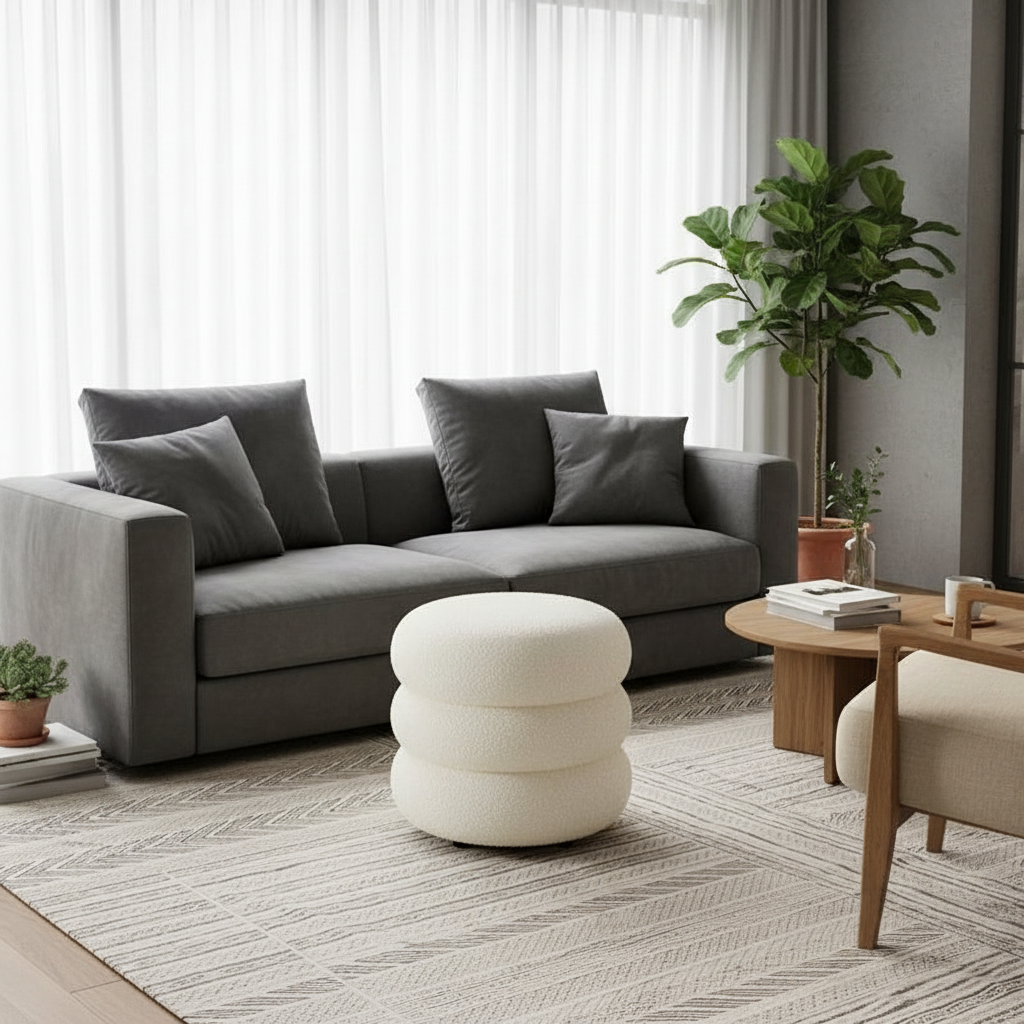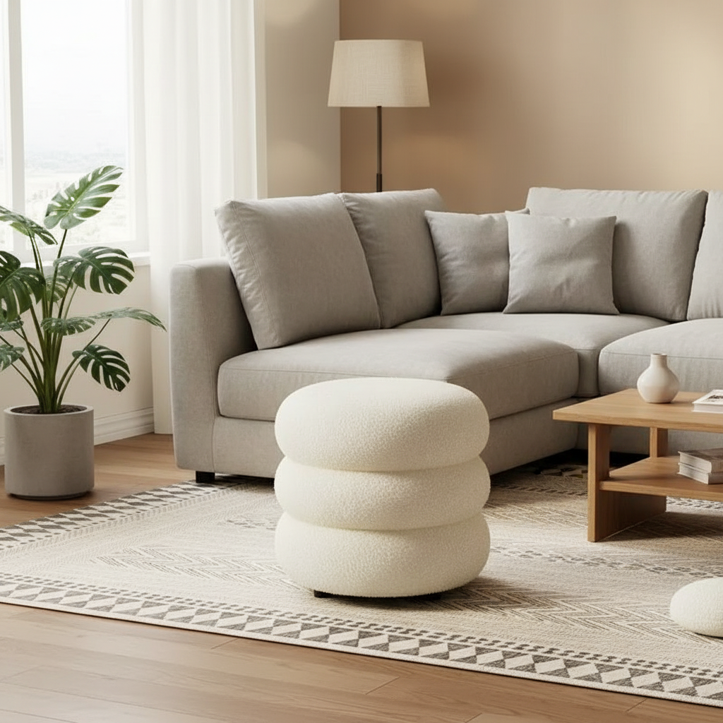 Repose Pied Salon Crème Bouclette Pouf : Usage Quotidien