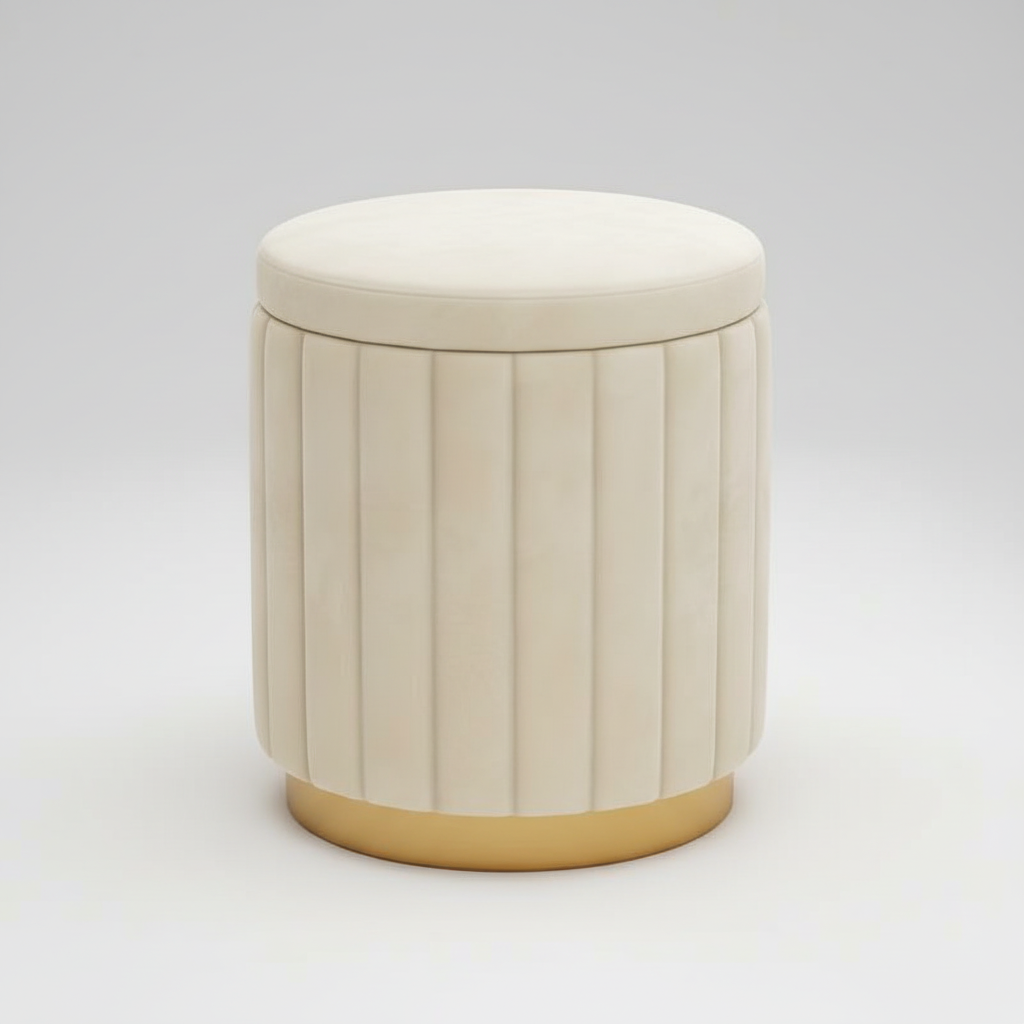 Repose Pied Salon Crème Velours Rangement avec Design Canelé