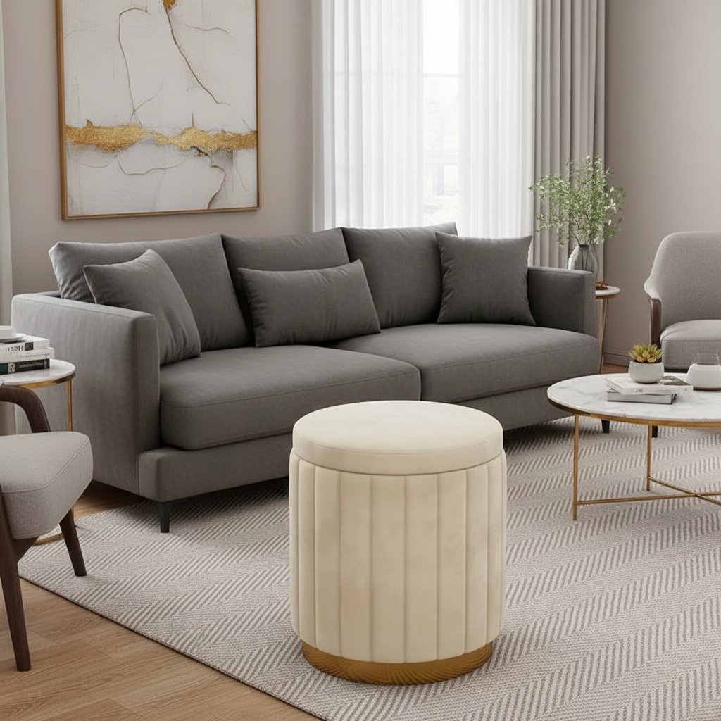 Usage Concret du Repose Pied Salon Crème Velours Rangement
