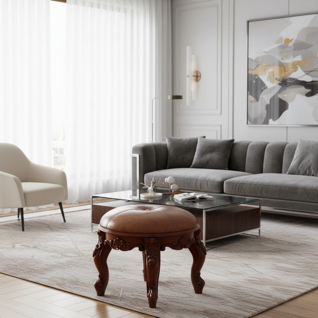 Repose Pied Salon Cuir Bois Sculpté Canapé : Confort et Esthétique au Quotidien