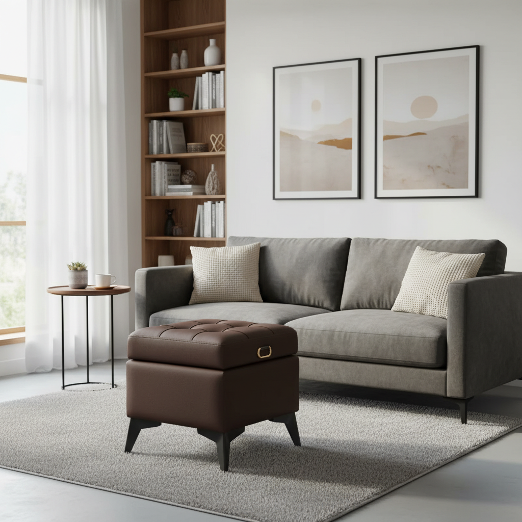Repose Pied Salon cuir capitonné rangement : Usage concret