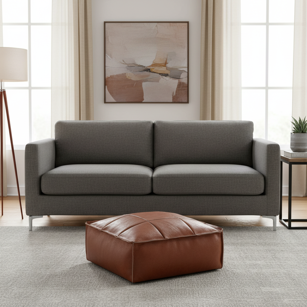Repose Pied Salon Cuir marron Pouf : Usage Quotidien