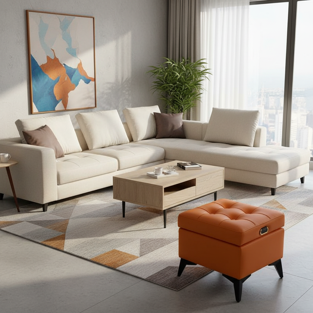 Pourquoi choisir notre Repose Pied Salon cuir orange rangement