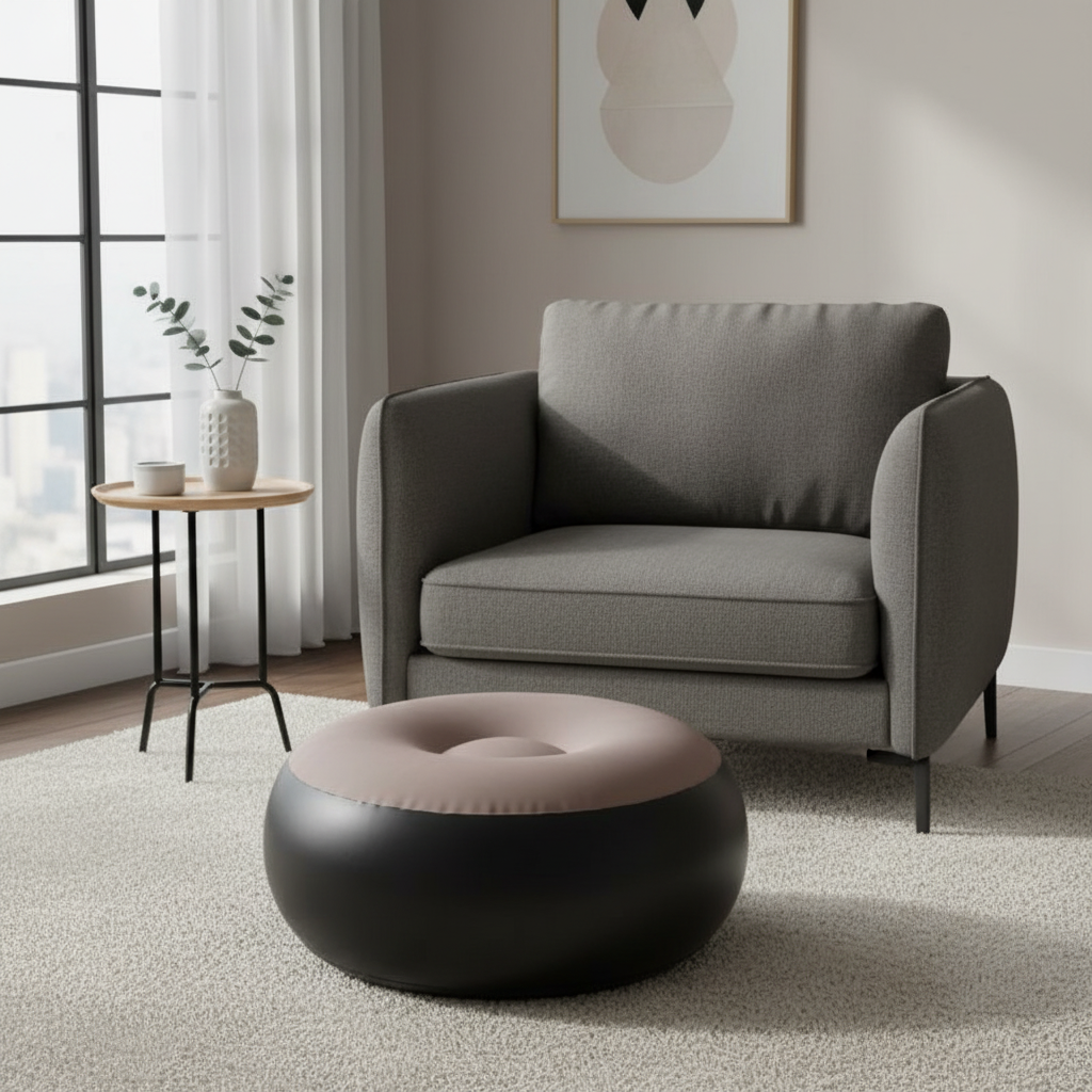 Repose Pied Salon Floqué Rond Portable et Gonflable