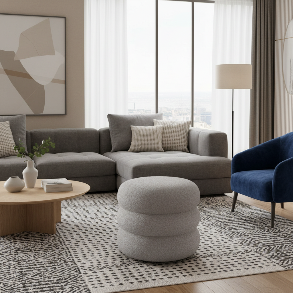 Repose Pied Salon Gris Bouclette Pouf : Design Empilé et Confortable