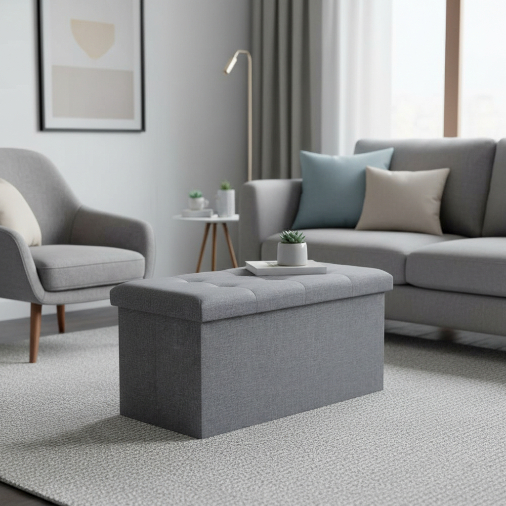 Pourquoi choisir notre Repose Pied Salon Gris Capitonné Rangement