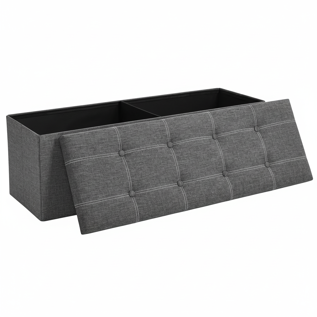Découvrez le repose-pieds gris capitonné, parfait pour allier détente et organisation dans votre salon.